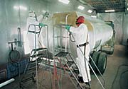 The painters choose from a range of primers: Variprime® and Corlar® on aluminum and bare steel, Tufcote§ for construction equipment, and URO Primer-Filler as a build primer.